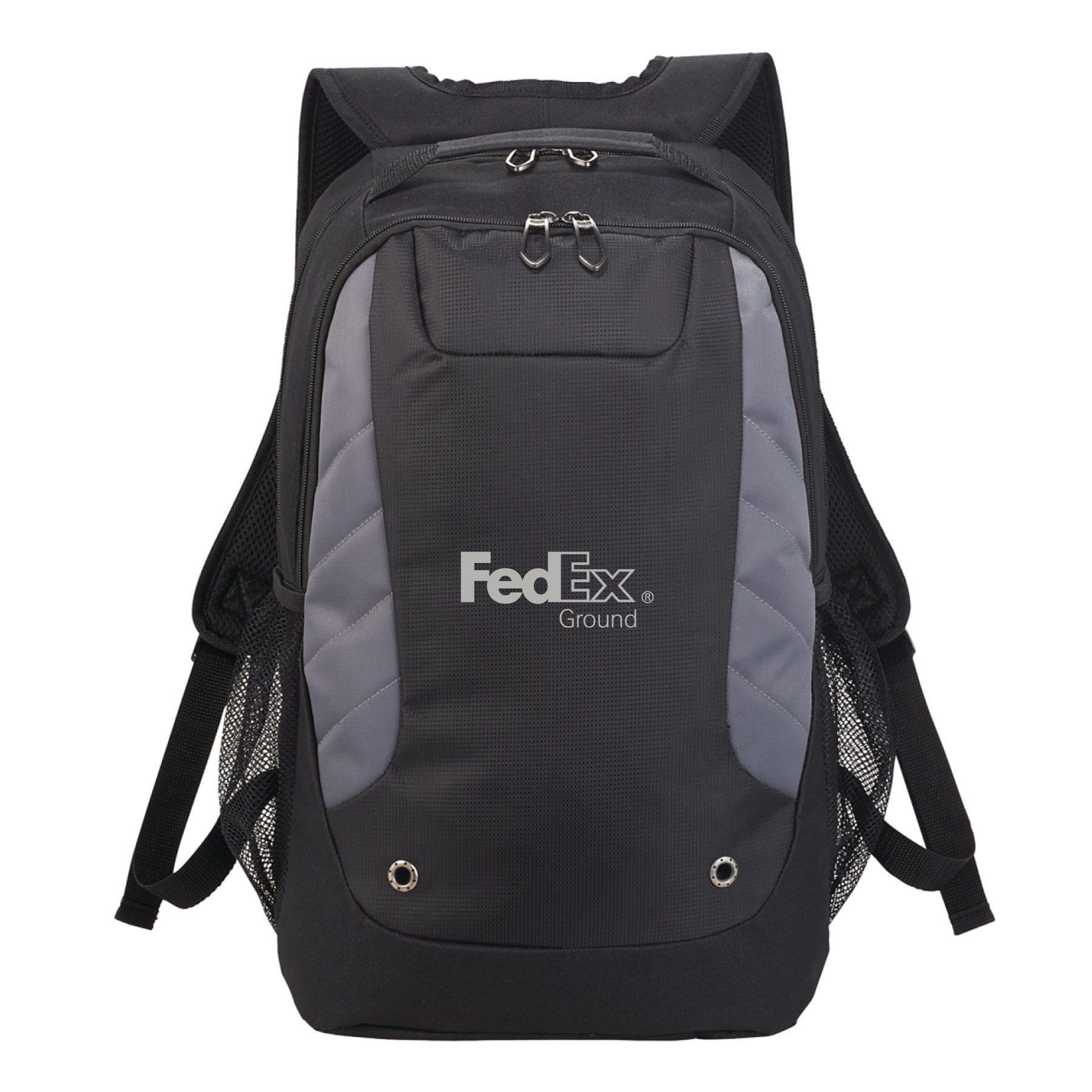 The Sanford 15 inch Computer Backpack features a zippered main compartment that holds up to 15 inch laptop. A mesh slash pocket on interior wall to hold all of your tech accessories, while the large zippered front compartment offers a deluxe organizational panel. The front panel is accented with grommet and stitched details. Comes with a side mesh water bottle pocket, a webbing grab handle and trolley sleeve, padded and adjustable shoulder straps and custom designed zippered pullers.
