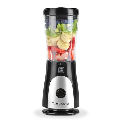 The blender for your on-the-go lifestyle Make yummy smoothies and shakes to go Blend in the detachable travel cup and drink-through lid One-touch operation to blend or pulse foods Stainless steel blades are durable and easily crush ice fruits veggies nuts and more 14oz Capacity