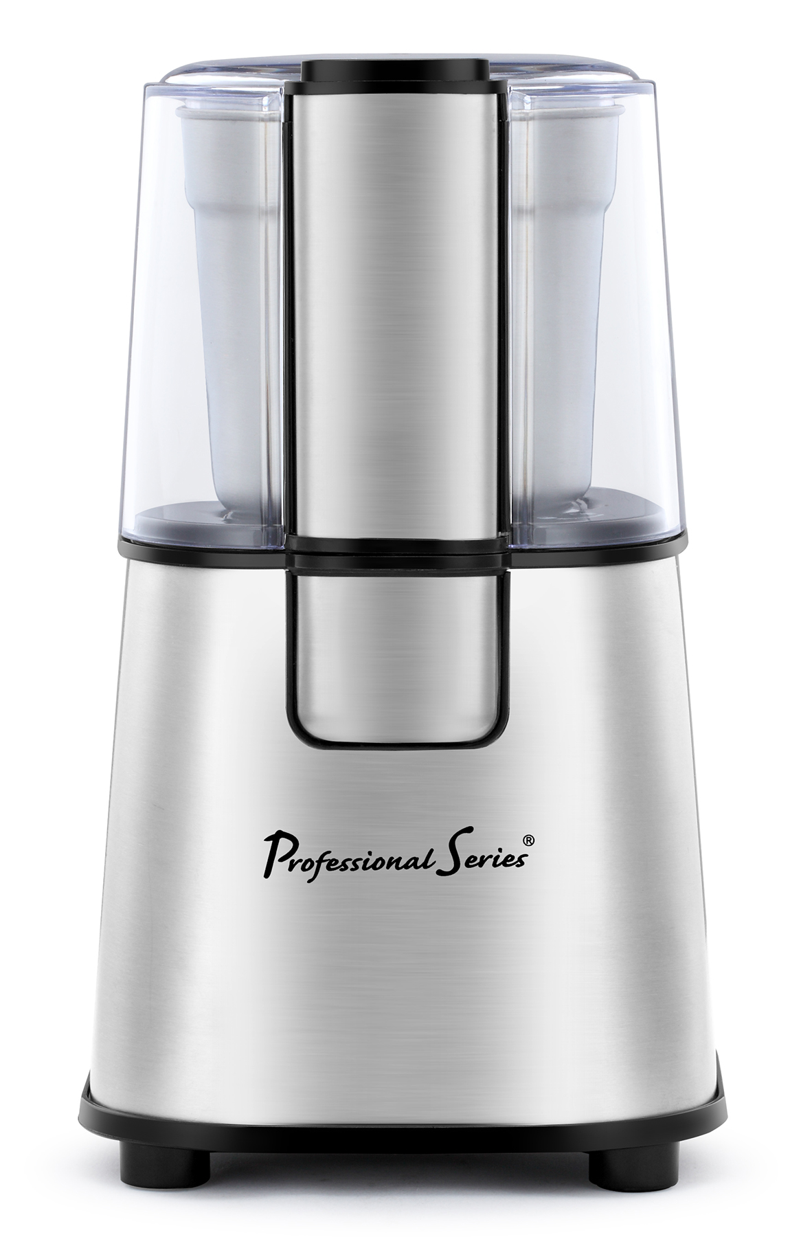 Transform aromatic coffee beans into coffee grounds for brewing with the Professional Series Stainless Steel Coffee Grinder. Simple, one-touch operation grinds even the most stubborn of beans into ready-to-use coffee grounds. Effective coffee grinder turns coffee beans into zestful coffee grounds for brewing One touch, easy operation ensures uniform grinding Reservoir for maximum and fast bean grinding 200-watt design for optimal use Stainless steel Wipe clean 12 teaspoon capacity Weighs 3 lb.